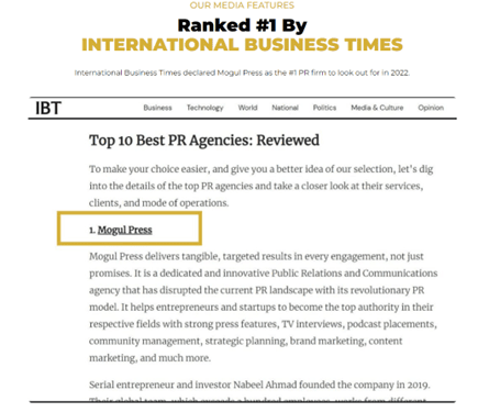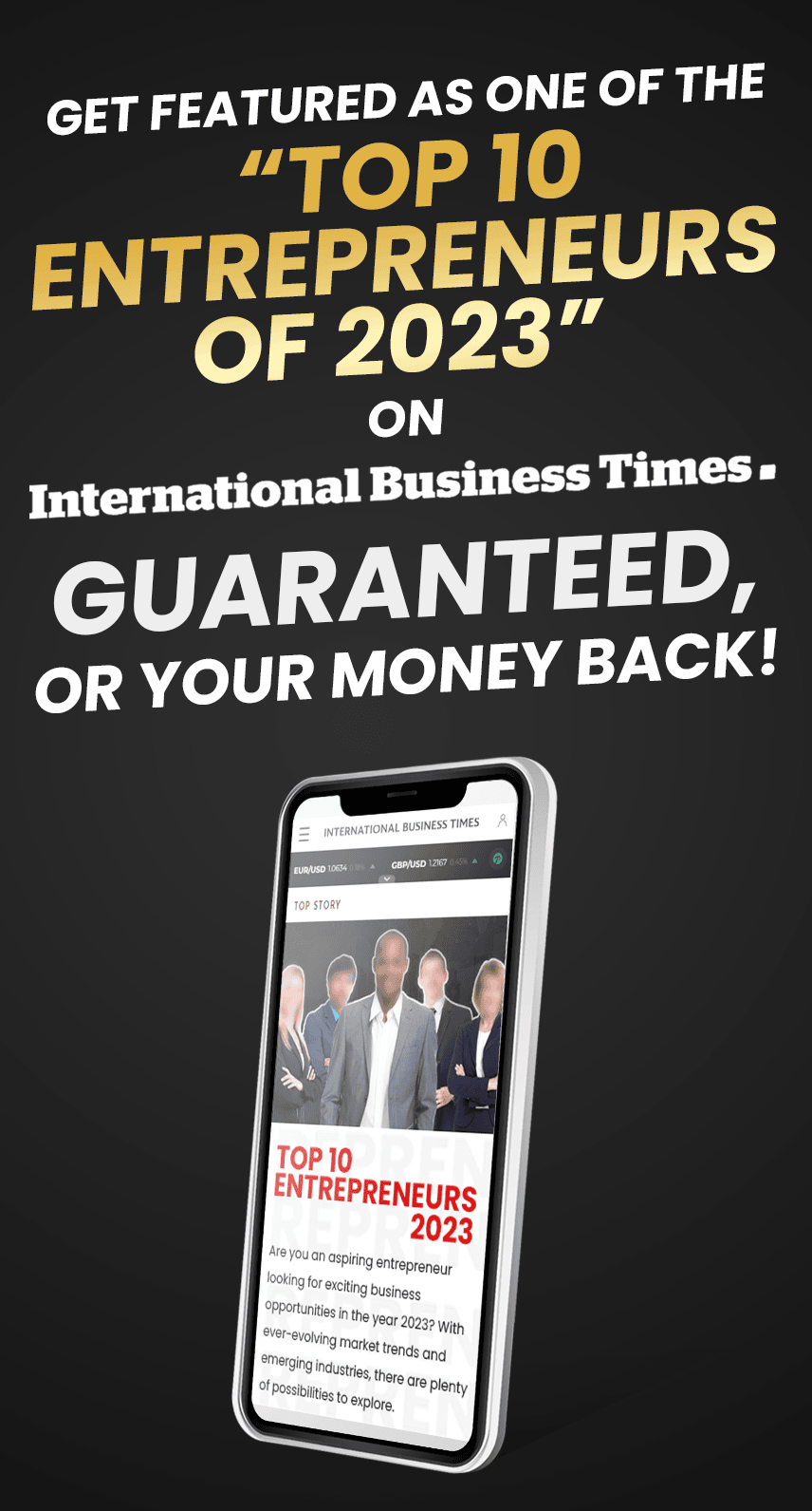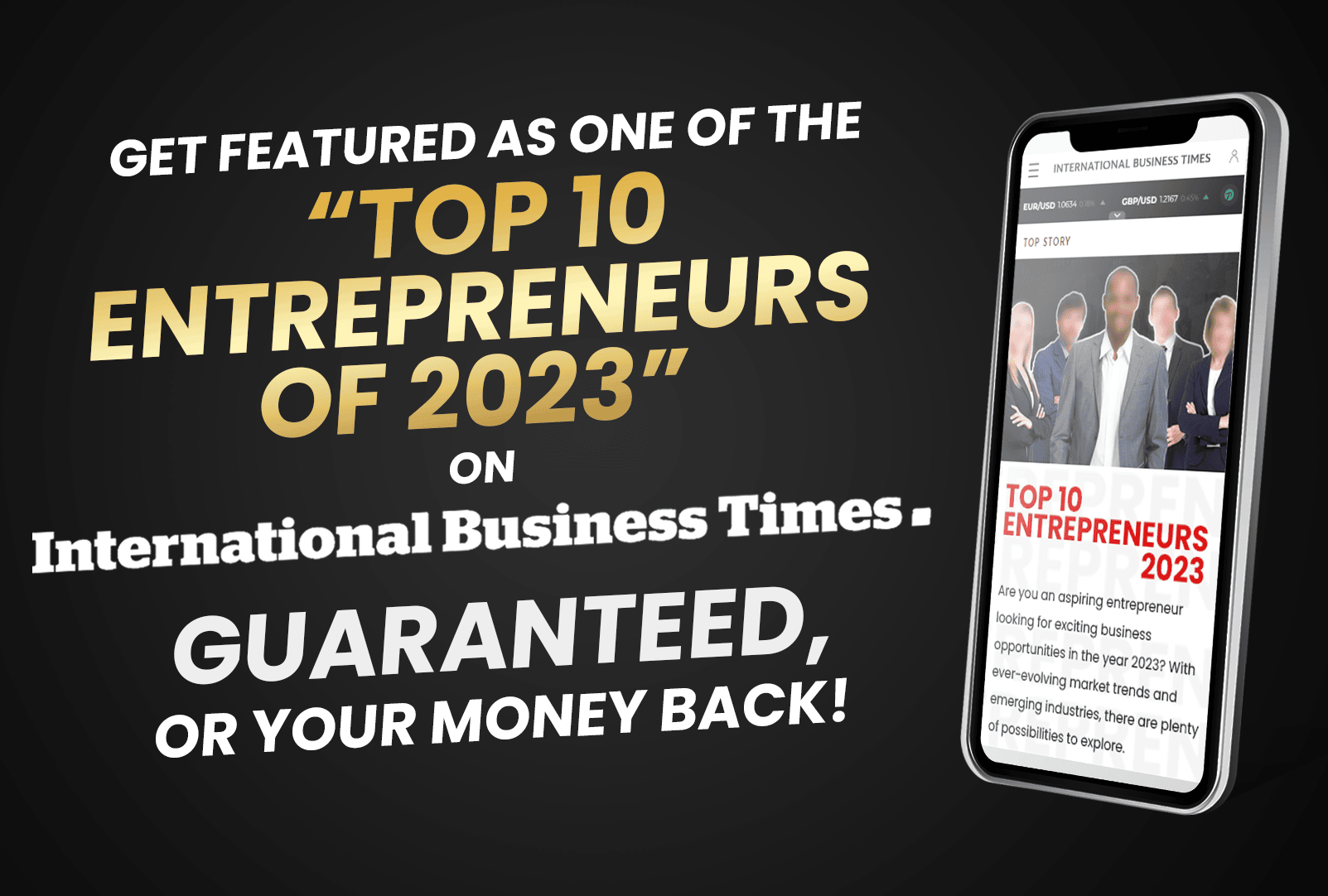 We're offering you a chance to be featured as one of the “Top 10 Entrepreneurs of 2023” in the International Business Times for ONLY $3,000 or we pay you back guaranteed. (Hint: It’s over $30k+ of value)